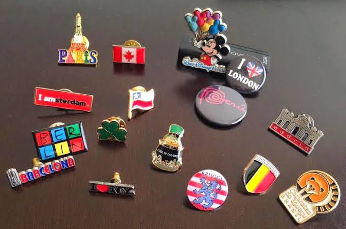 Contrastando com o último item, esse não ocupa espaço quase nenhum, e é muito simbólico, com muitas versões, um charme, devo confessar que tenho um fraco para pins, além de serem baratos e super legais como lembrança, são muito fofinhos e dá para colocar em roupas e mochilas.