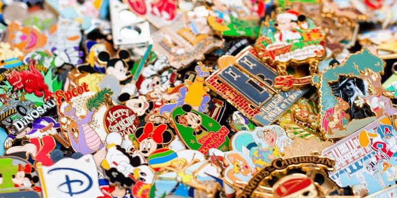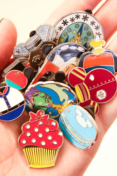 Na Disney, existe uma febre de pins, muitas pessoas colecionam, e é pin que não tem fim, de todos os personagens, de formas diversas.