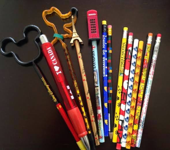 As canetas e lápis decorados, são ótimos para deixar a escrivaninha decorada, e ainda ter varias canetas do mundo todo, cada uma com sua história.